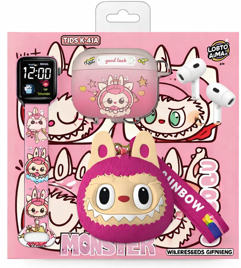 The Labubu Wireless Earbuds Gift Set is a fun and colorful all-in-one gift box featuring TWS earbuds, a digital kids watch, and cute matching accessories in a playful Monster theme—perfect for gifting and everyday use. Price : only Dhs:89